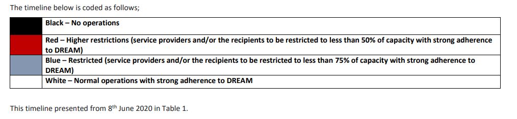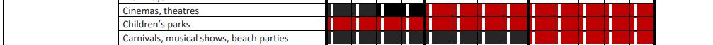දැනට විවෘත කළ නොහැකි බවට කළු පැහැයෙන්ද, 50%ක් විවෘත කළ හැකි නම් රතු පැහැයෙන් සහ 75%කින් විවෘත කළ හැකිනම් නිල් පැහැයෙන් මෙම නිර්දේශ සටහන දක්වා තිබෙනවා. ඒ අනුව ජූලි 06 වැනිදා සිට 12 වැනිදා අතර කාලය තුළ 50%කින් ස්නාමාහල් විවෘත කළ හැකි බවට දැනට මෙම සටහනින් දක්වා තිබෙනවා.
