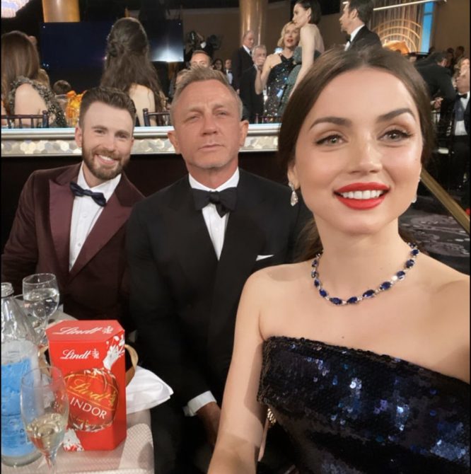 Blade Runner 2049, Overdrive, Knives Out වැනි චිත්රපට හරහා අපට සමීප වුණු Ana De Armasගේ අලුත්ම චිත්රපටය No Time to Die ලෝ පුරා සිනමාශාලාවල තවමත් තිරගත වනවා. Daniel Craig විසින් James Bond චරිතය නිරූපණය කරන අවසාන 007 චිත්රපටය එය වීමත් විශේෂත්වයක්. Ana De Armasගේ සරාගී බව සහ ආකර්ෂණීය පෙනුම නිසාම දිනෙන් දින ඇගේ ජනප්රියත්වය වර්ධනය වන බව නොරහසක්. ප්රමුඛ පෙළේ entertainment වෙබ් අඩවි වාර්තා කරන විදිහට, ලෝකයේ වේගයෙන්ම ජනප්රිය වන රංගන ශිල්පිනියන් අතරට ඇයත් එකතු වී අවසානයි. ඇය සහ Chris Evans දෙදෙනාම මීට පෙර Knives Out චිත්රපටය හරහාත් අපිට දැකගන්න ලැබුණා. වාර්තා වෙන අන්දමට Ghosted නිර්මාණය වෙන්නේ සිනමාශාලා ප්රදර්ශනය වෙනුවෙන් නෙමෙයි. සිනමාශාලා ප්රදර්ශනය මඟ හරමින් Apple TV+ ඔස්සේ Direct OTT මාධ්යයෙන් නිකුත් වන මෙය romantic action-adventure චිත්රපටයක් බවත් අන්තර්ජාලයේ සඳහන් වනවා.